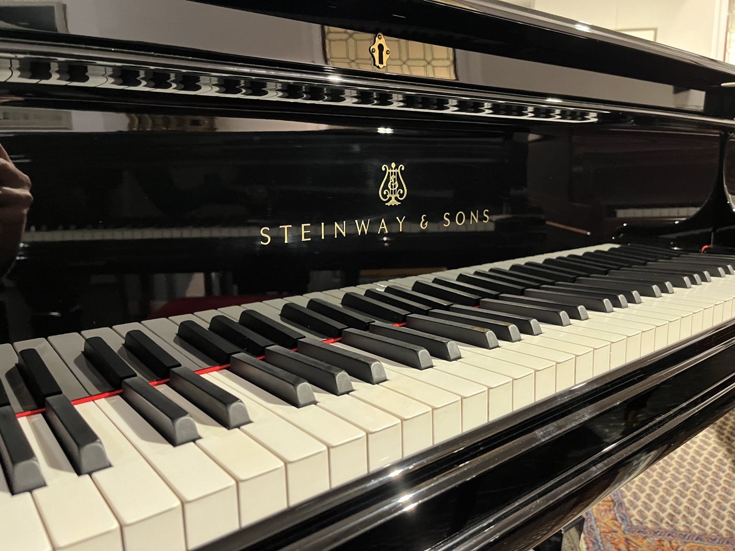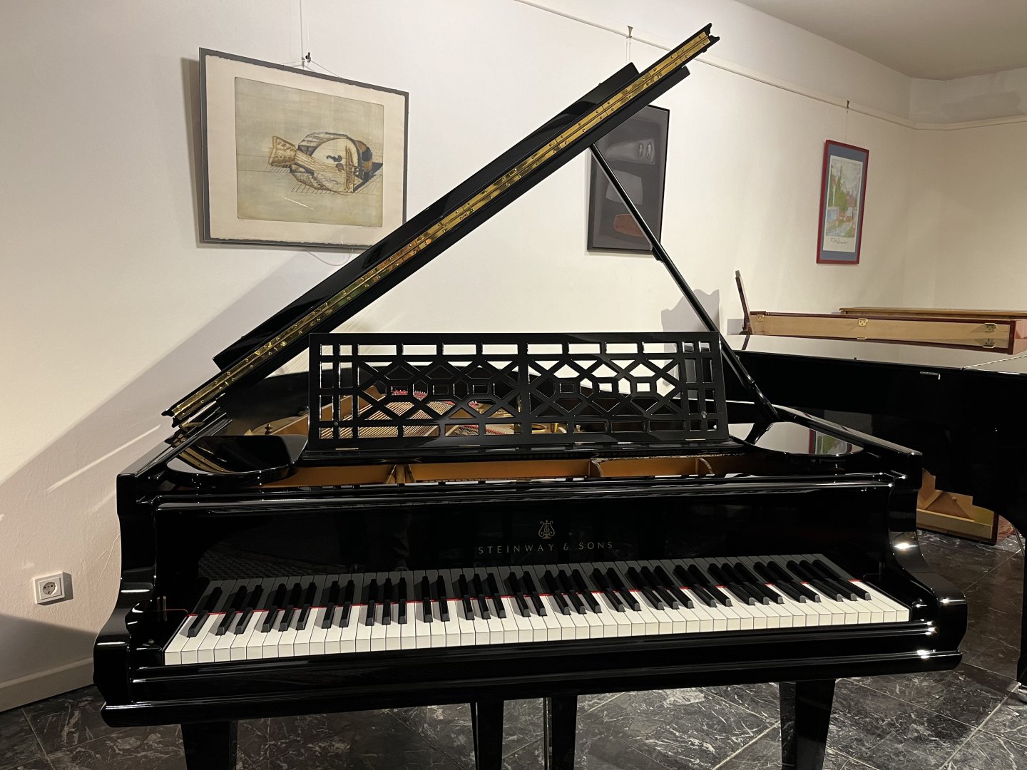 In unserer Werkstatt wurden Hammerköpfe, Hammerstiele, Dämperfilze und Hebeglieder mit Originalteilen von Steinway & Sons erneuert. Wir haben außerdem den Resonanzboden und die Gussplatte lackiert und die Diskantsaiten, Basssaiten und Stimmwirbel erneuert. Der Flügel erhielt eine neue schwarze Polyester Oberfläche in Hochglanzoptik. Abschließend erfolgte eine sorgfältige Intonation und Regulierung, einschließlich der Anpassung des Tastengewichts und Mehrfachstimmung. Das Instrument befand sich zuvor in Privatbesitz und wurde uns nach zwei Generationen verkauft. Aufgrund seines hohen Alters wurde es in unserer Werkstatt umfassend überarbeitet und präsentiert sich nun in einem „neuwertigen” Zustand mit Designelementen, die man heute bei einem Steinway nicht mehr findet.